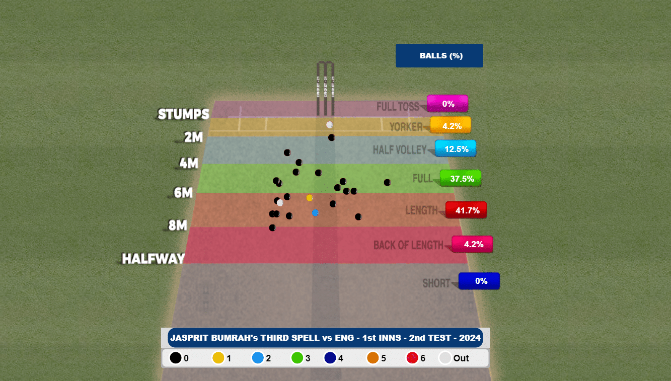 Since the Bazball era, England have rarely been bogged down by the pressure. When Root was dismissed, England were three down, but the base that was created by Zak Crawley was screaming for some more atrocity. Against any other bowling attack - precisely any other attack sans Bumrah - that would have been the order of the day. But Bumrah thwarted their plans with a peach to dismiss Ollie Pope before luring Jonny Bairstow to an expansive drive that headed to Gill again. As a matter of fact, Bumrah bowled 91.7% of his balls between the 2-8m length - fully utilising the reverse swing on offer.