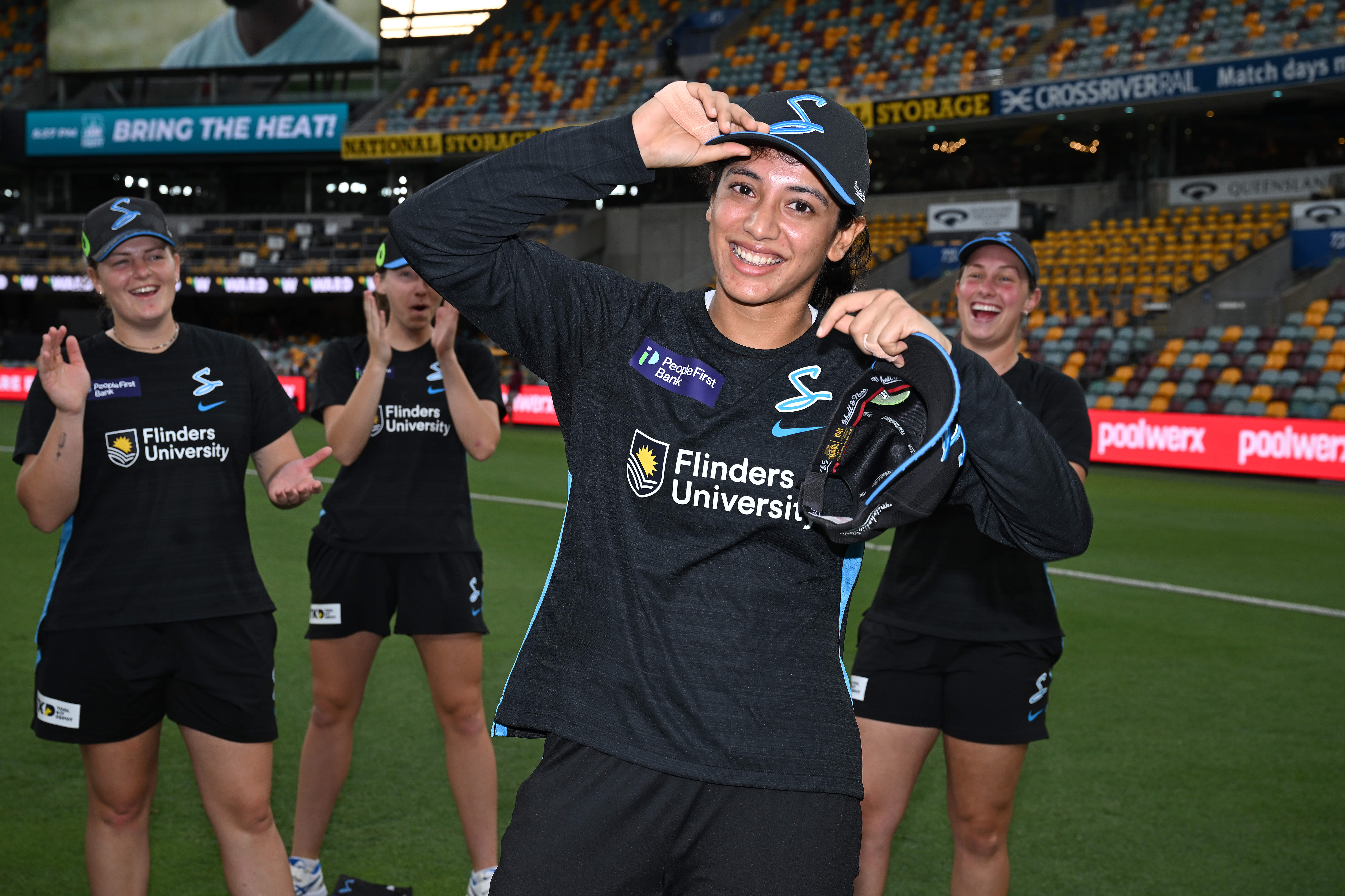 A death stare from Harmanpreet followed a WTF reaction from Healy, ending with Healy being the bigger ‘man’ and snapping the victorious Indian team in her camera.