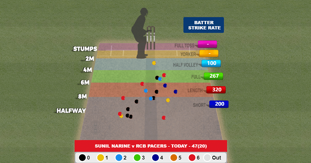 On Friday, Narine spared none. Everyone knew he was a big hitter against spin, but RCB had no fear, having stacked their side with full pacers apart from a lone spinner in Mayank Dagar. So much so that in his 22-ball innings today, Narine faced only two deliveries from Dagar. That’s a match-up disadvantage for him, which had the potential to derail his stay in the middle, but instead, it turned out to be a completely different story.