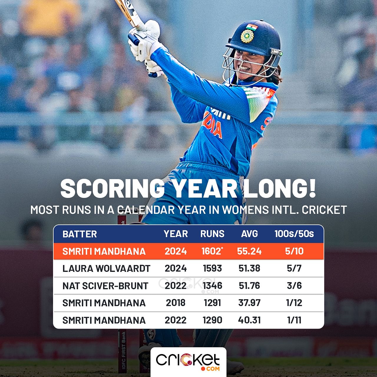 > Most 50-plus scores in a calendar year in Women’s internationals (16)