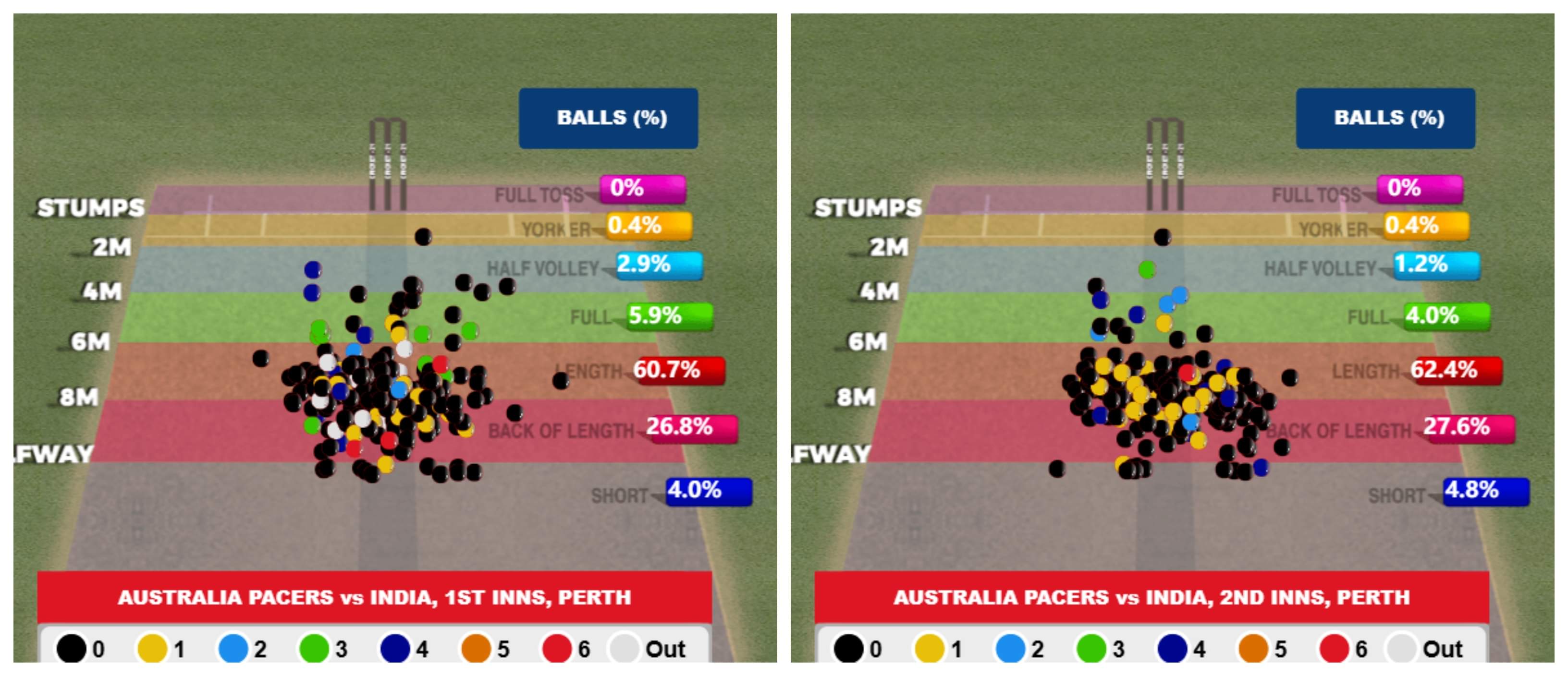 Once the day’s play ended, it became even clearer that even Australian bowlers didn’t do anything much different on day 2. That’s why you can see such similarity in the lengths where they have attacked the Indian batters over the last two days, but with contrasting results.