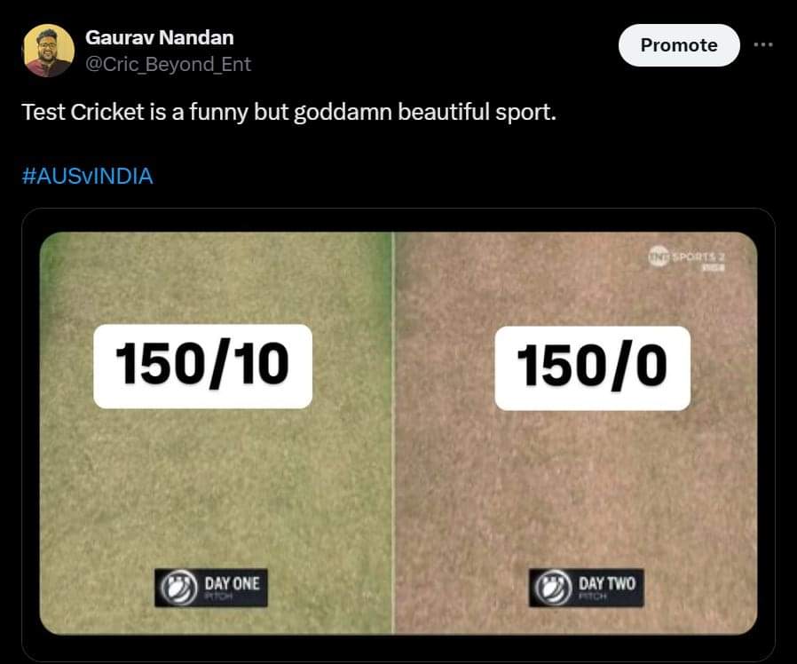 After 17 wickets fell like dominoes on Day 1, two wicketless sessions on the next day make you think that someone has replaced the pitch right after Nathan Lyon’s wicket fell in the morning. Mitch Starc and Josh Hazlewood batted more balls for the 10th wicket than the entire top five of Australia combined. Yashasvi Jaiswal even shouted back to Starc in jest while batting, saying, “It’s coming too slow.”