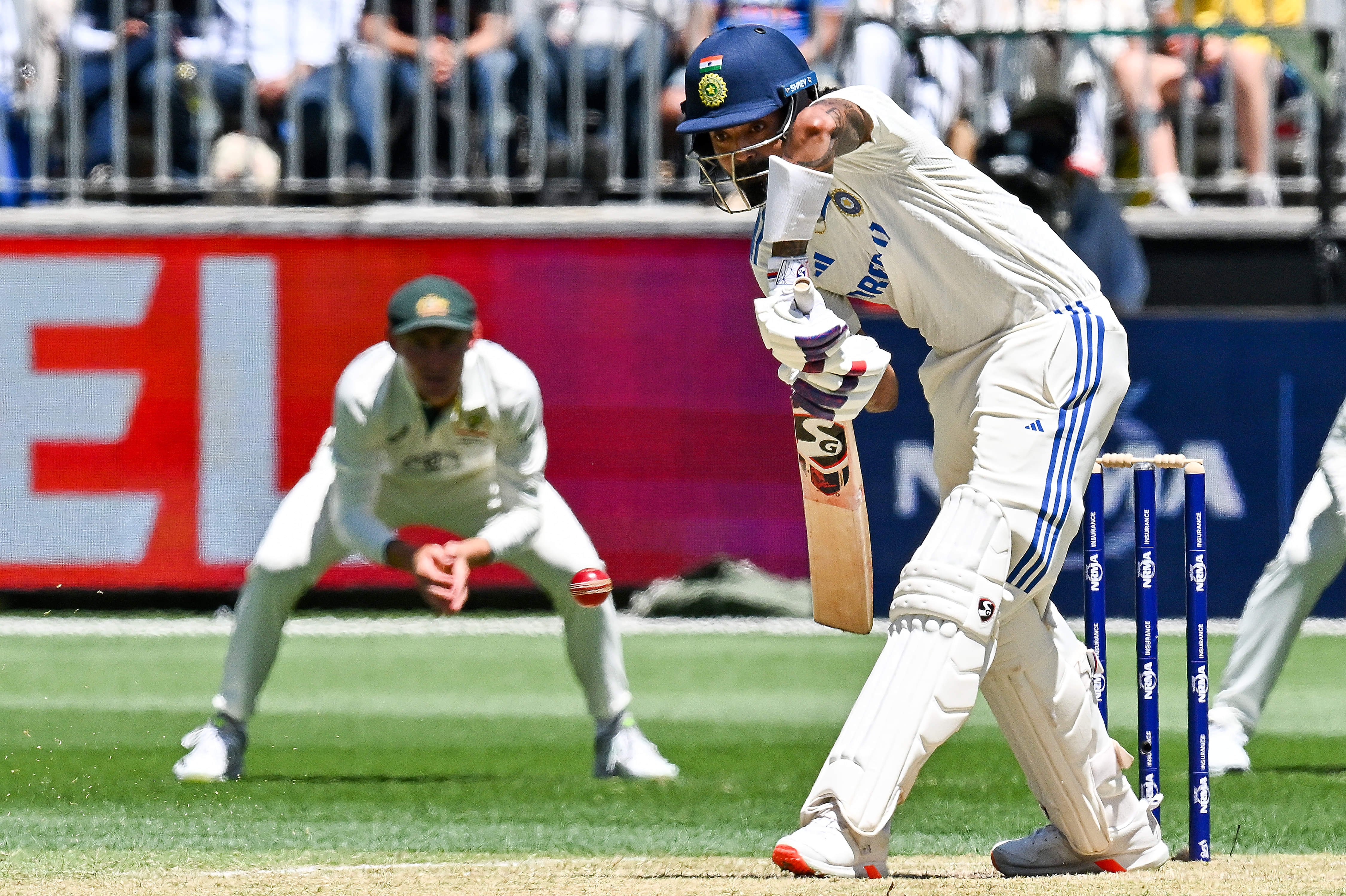 If Jaiswal’s doggedness showed through in his leaves, it was Rahul’s pillowy hands that made it seem as if he was playing with extra padding on his bat. He was adamant about not hitting anything hard, letting the ball come to him, and then he played it with hands so soft that the ball could almost cuddle with his bat.